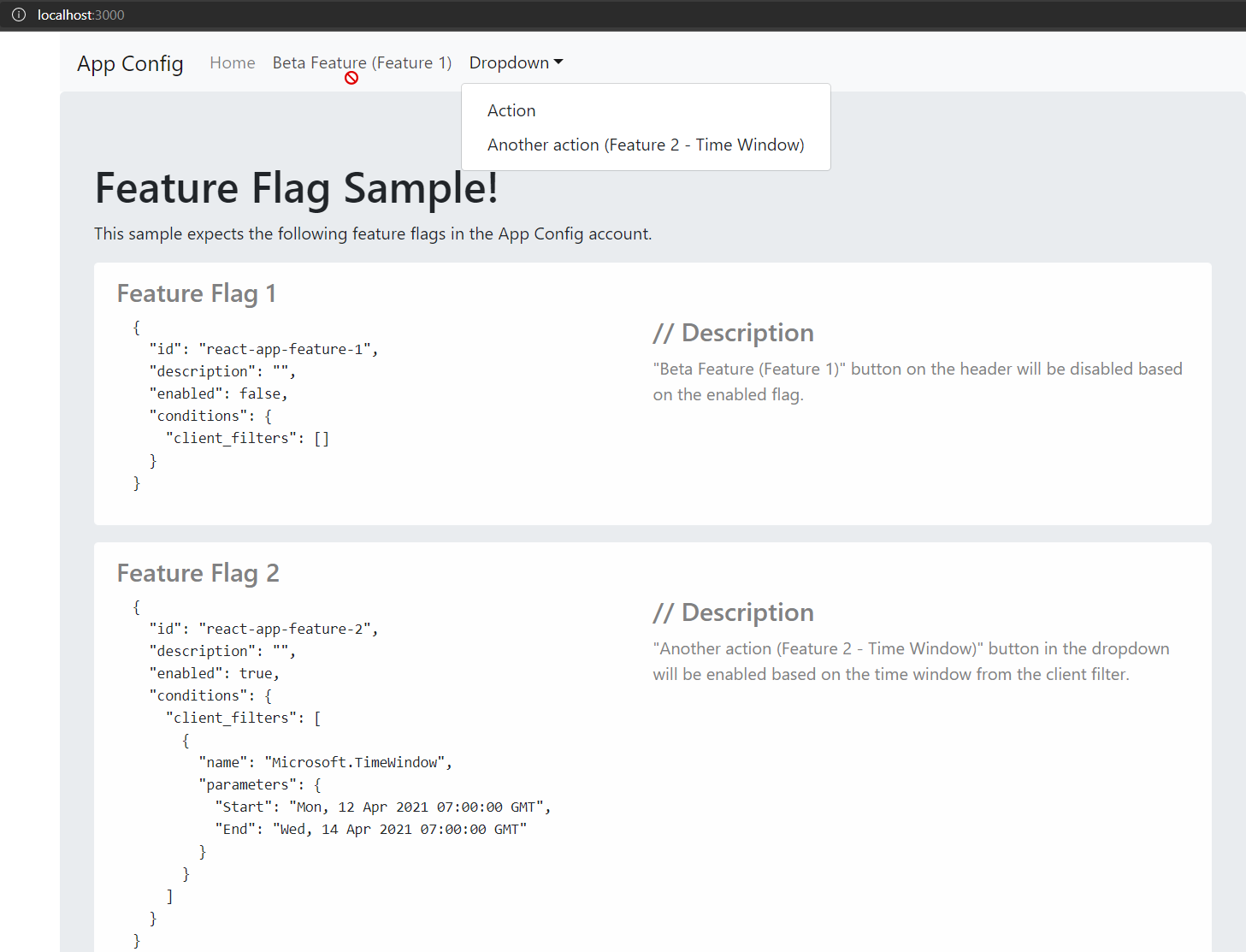 As listed in the readme, to run this app, the user has to create an App Config resource and add the suggested feature flags.
