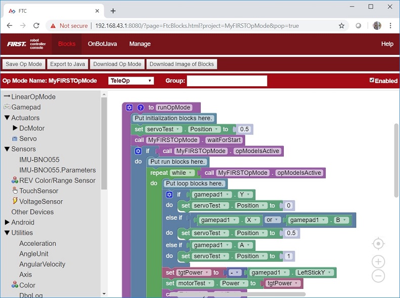 | 11. Follow the procedure outlined in the section titled Running Your Op Mode to run your updated op mode.