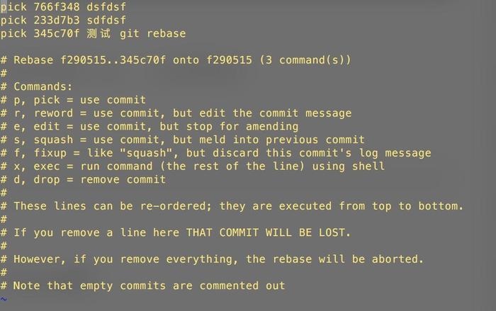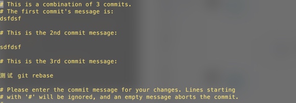 squash 345c70f 测试 git rebase我们可以这样修改 将后面两个改成squash,就是合并到第一个上去