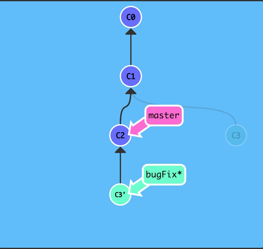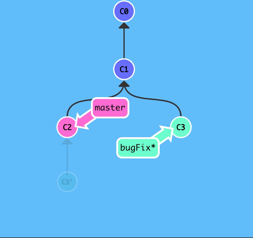 $ git rebase bugfix好了!由于 bugFix 继承自 master,所以 Git 只是简单的把 master 分支的引用向前移动了一下而已。