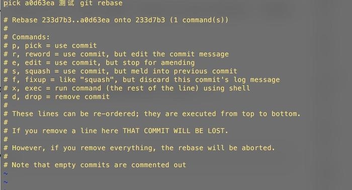 (experiment) $ git rebase -i origin/experiment在这里你在rebase你的当前分支(experiment分支)到一个已经存在历史中的commit(origin/experiment).如果这个rebase不是interactive的话,那么这个动作是毫无意义的(实际上会被作为一个短路的no-op).但是正是有了这个-i选项,你将可以编辑rebase将要执行的这个脚本化过程。那个脚本将会打开一个git editor,就像我们在commit提交时弹出的编辑框一样。