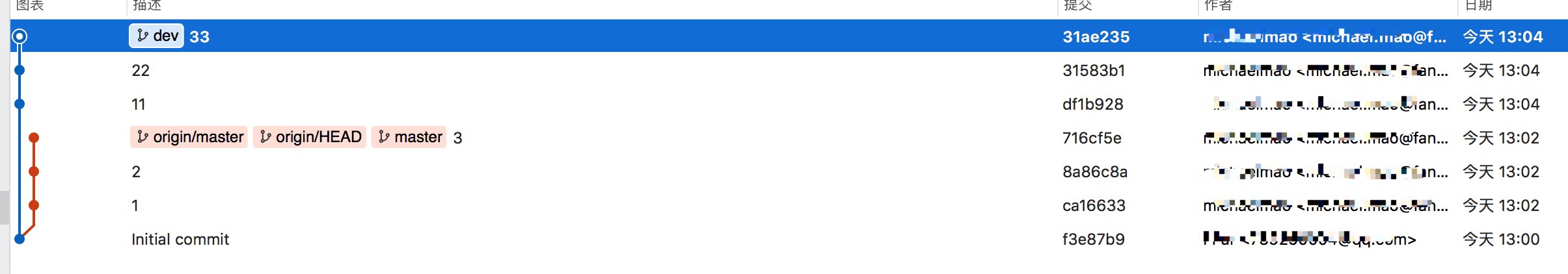 现在我们在这个分支做一些修改,然后生成两个提交(commit).
