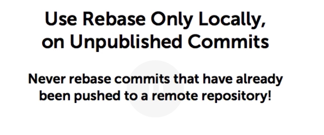永远不要rebase一个已经分享的分支(到非remote分支,比如rebase到master,develop,release分支上),也就是说永远不要rebase一个已经在中央库中存在的分支.只能rebase你自己使用的私有分支