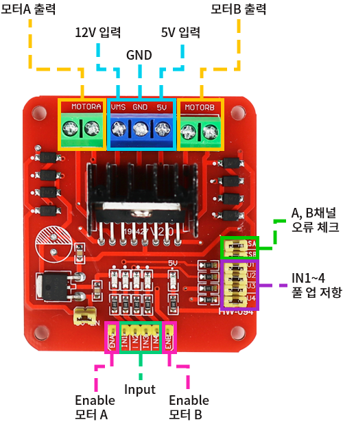 - 4휠 자동차용 L298N 모터 드라이버 모듈 - https://eduino.kr/product/detail.html?product_no=2384
