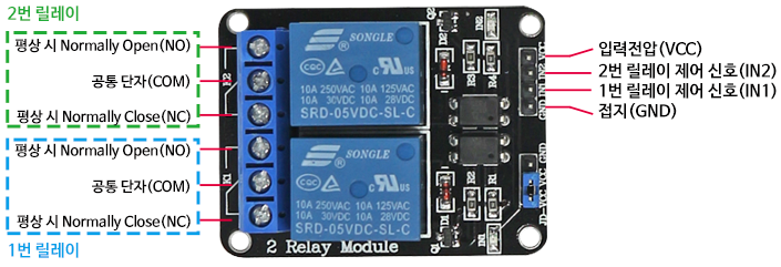 - 2채널 릴레이 모듈 - https://eduino.kr/product/detail.html?product_no=47
