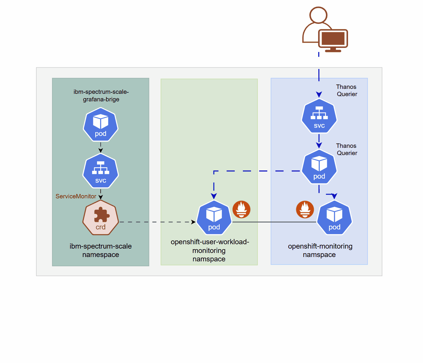 NOTE: You probably need to label the openshift-user-workload-monitoring namespace with scale.spectrum.ibm.com/networkpolicy=allow to allow ingress and egress communication from this namespace to the ibm-spectrum-scale namespace within your Red Hat OpenShift cluster.