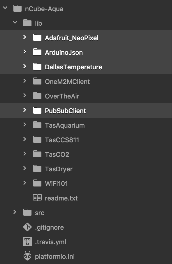 다운로드 받은 라이브러리들을 아래의 그림과 같이 nCube:Thyme for Arduino 프로젝트의 라이브러리 폴더로 복사한다.
