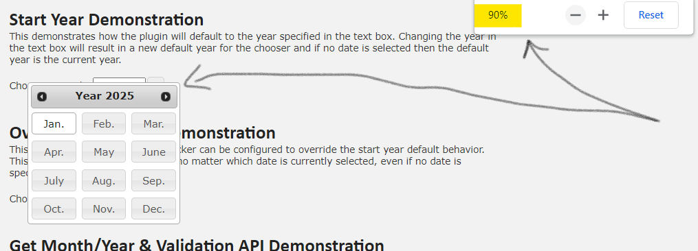 you can see it live here, just open any monthpicker dialog & perfrom zoom-in zoom-out.