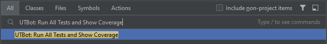 You can also go to Navigate > Search Everywhere and enter UTBot: Run All Tests and Show Coverage.