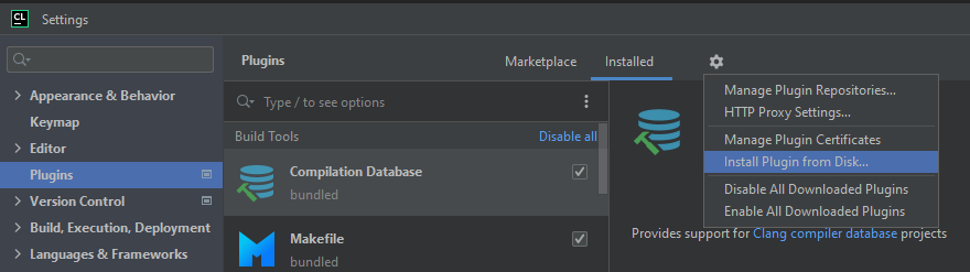 clion_plugin.zipfile an and click OK. - On Plugins, click OK to apply the changes and restart your IDE if prompted.