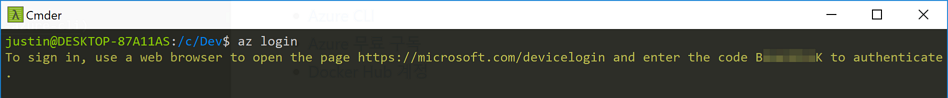 az login아래와 같은 메시지가 나올 경우 웹 브라우저를 이용해 로그인 절차를 마무리합니다.