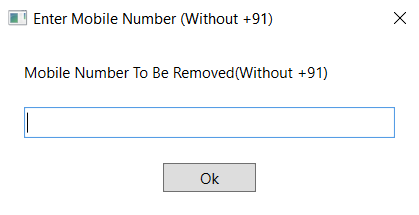 - If second option is chosen, then, provide the mobile number in the window as shown below without putting +91 before any number and press Ok.