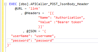 I had wanted to use the project to create a proc that could retrieve the token. However, I am getting nothing back when I am using either [APICaller_POST] or [APICaller_POST_JsonBody_Header]