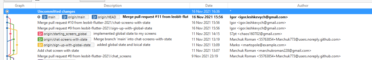 - First @Marchuk773 pushes commit where he adds files for Redux and some stuff related to his screens in his personal branch