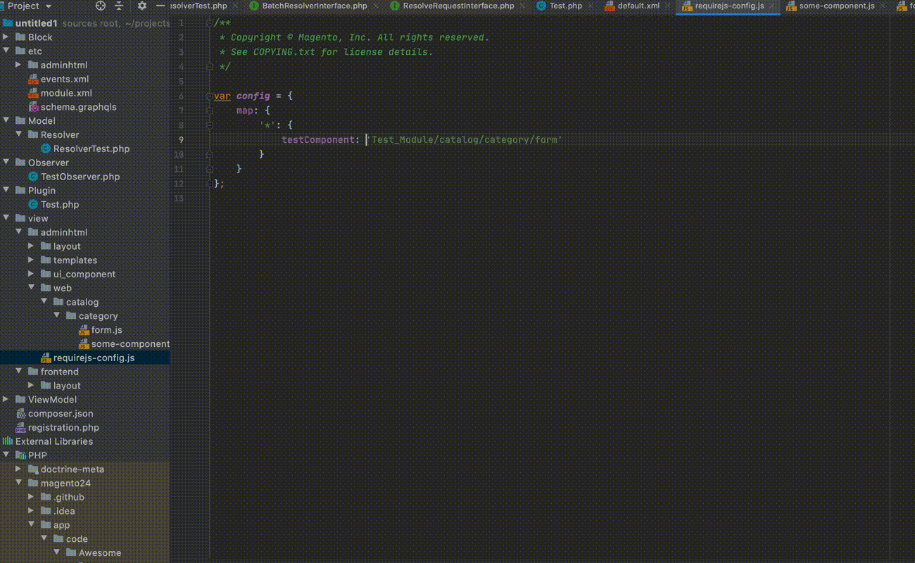 The RequireJS configuration file requirejs-config.js is commonly used in the different areas of Magento 2.You can use it to create aliases for a component. We added support for this mapping so you can more easily navigate between JS files.