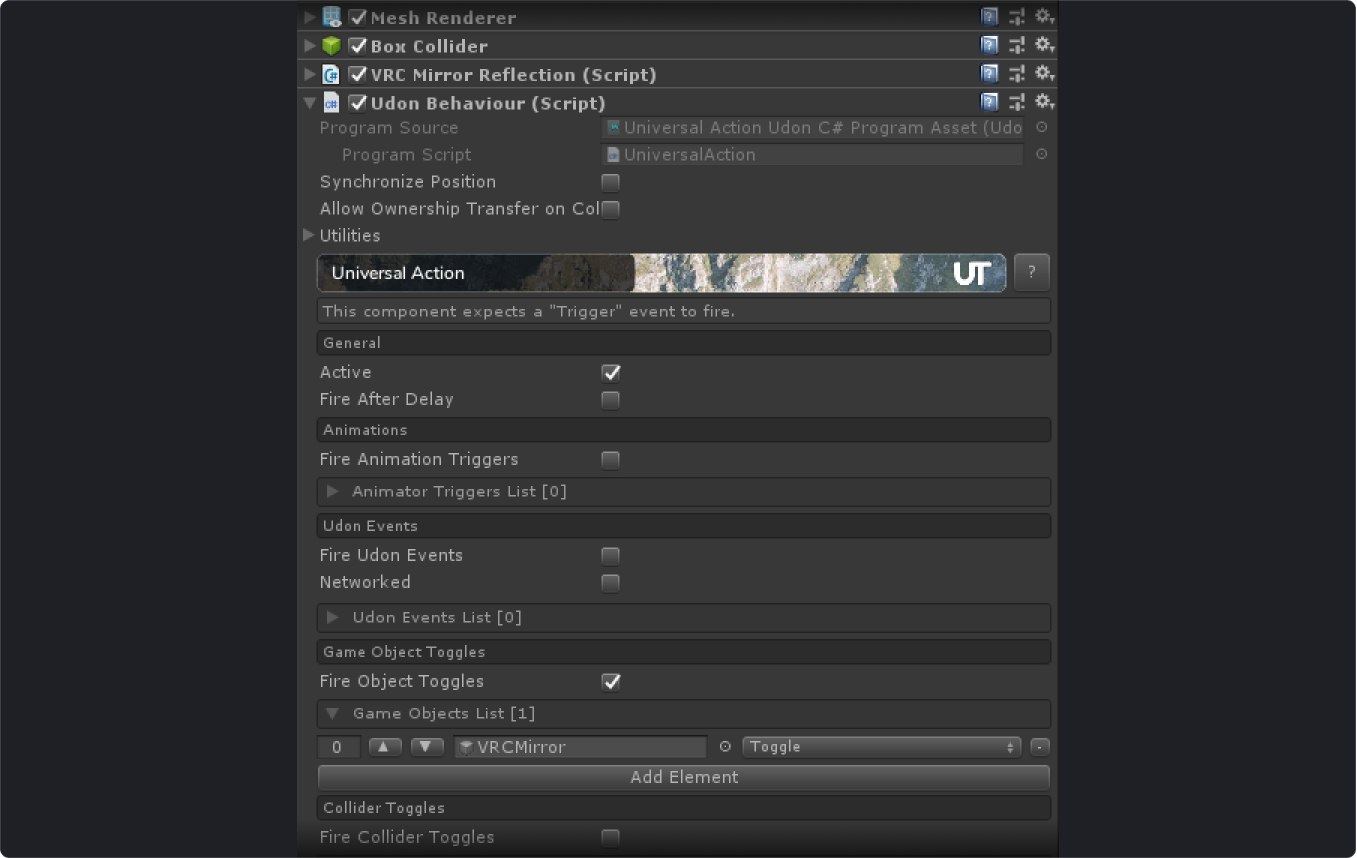 You're done! Now you can toggle your mirror via UI button in Udon.
