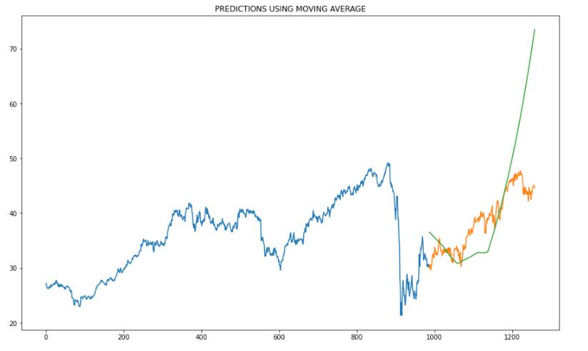 - From this we can see that the prediction using the moving average doesnt seem to work very well.