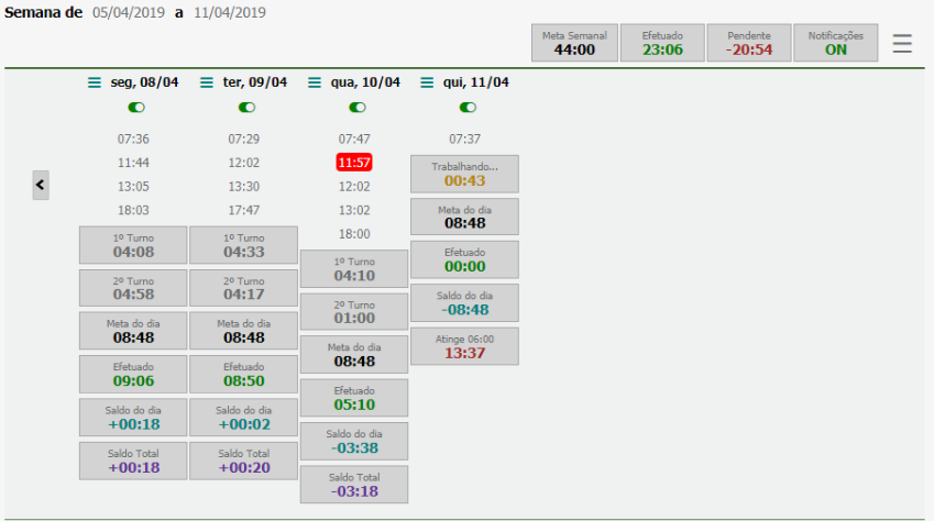 The "red time" is a time marked as wrong in the system. Even being marked, the system continues showing it, and it causes calculation errors in Queiroz.js. The "red time" must be ignored.